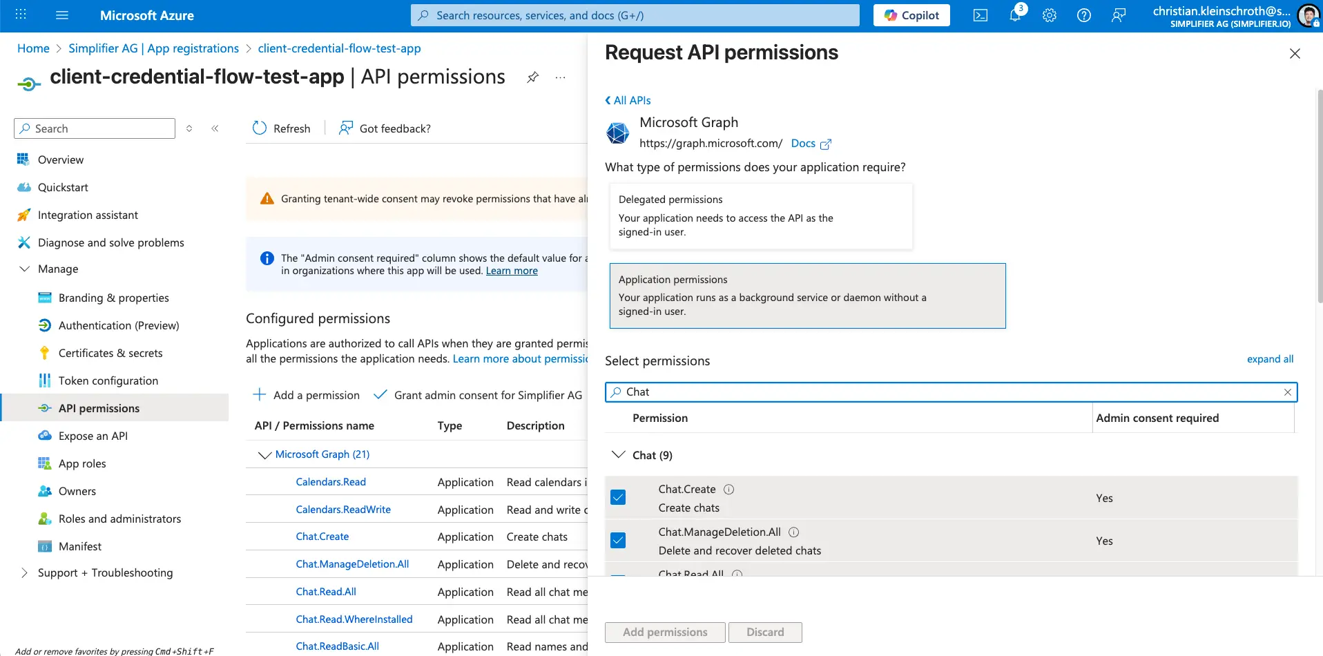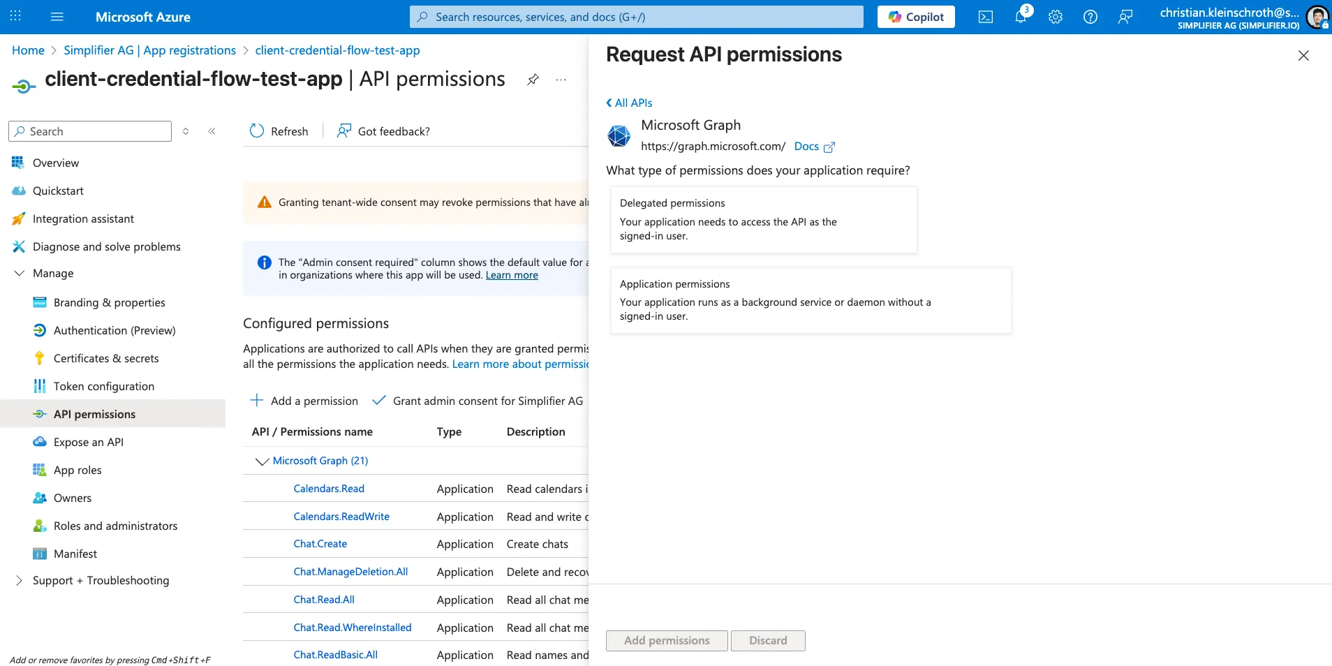 Step 3 – Add the API Permissions (e.g. for the Graph API)