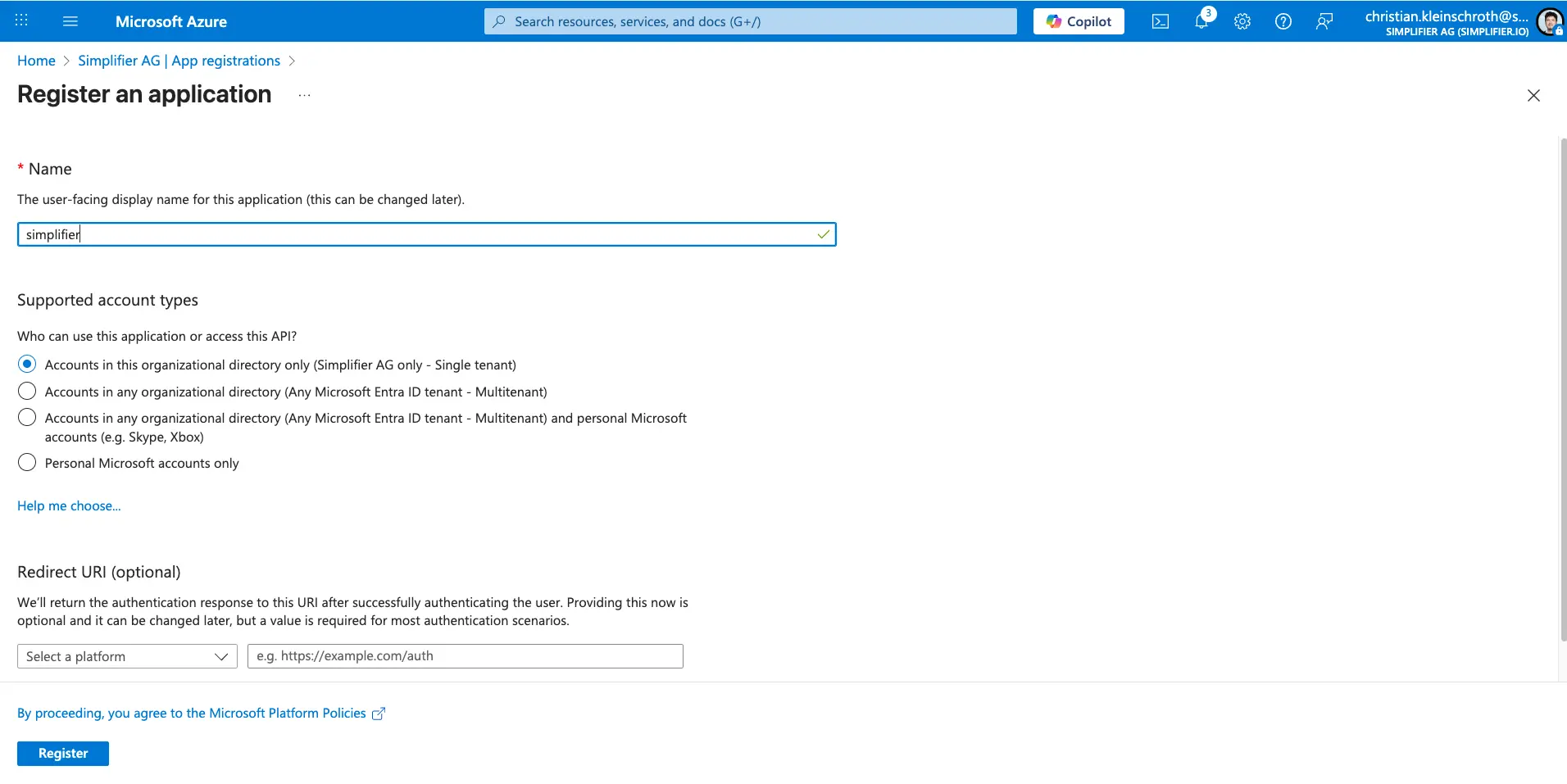 Step 1 – Register Application